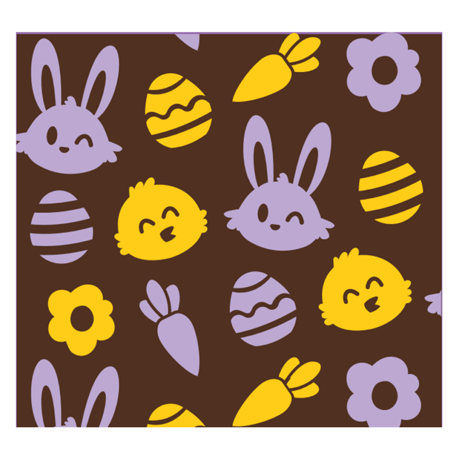 Use the Assorted Eggs, Bunnies, and Flowers transfer sheet to decorate your truffles and chocolate candies and create beautiful decorations on your cakes, pastries, ice cream, and other desserts for Easter.